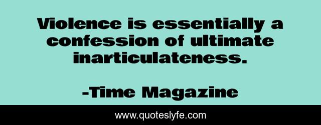 This page presents the quote "Violence is essentially a confession of ultimate inarticulateness.". Author of this quote is Time Magazine. .