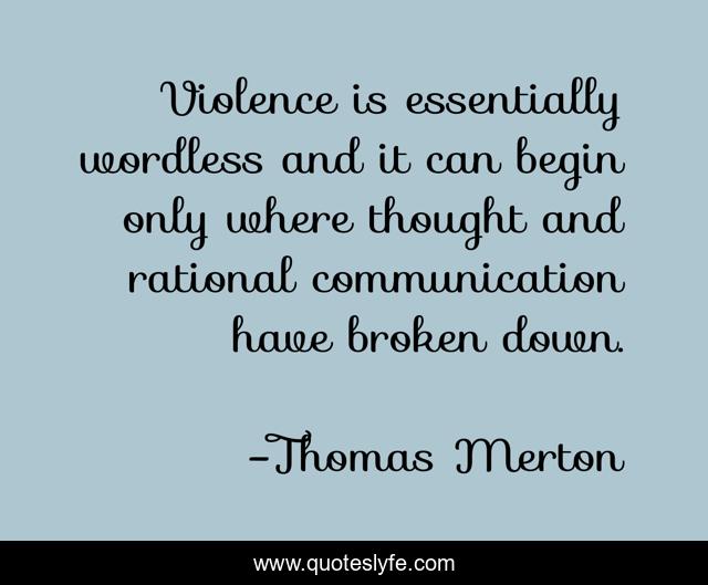This page presents the quote "Violence is essentially wordless and it can begin only where thought and rational communication have broken down.". Author of this quote is Thomas Merton. .