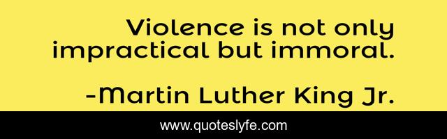 This page presents the quote "Violence is not only impractical but immoral.". Author of this quote is Martin Luther King Jr.. This quote is about nonviolence, violence,.