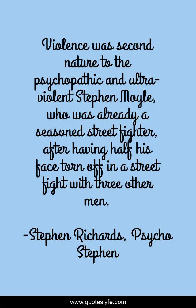 "Stephen Richards, Psycho Stephen Quotes." Quoteslyfe.com, 2025. Tue. 09 Dec. 2025. <https://www.quoteslyfe.com/quote/Violence-was-second-nature-to-the-psychopathic-194587>.