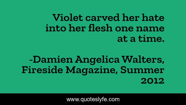 "Damien Angelica Walters, Fireside Magazine, Summer 2012 Quotes." Quoteslyfe.com, 2025. Fri. 05 Dec. 2025. <https://www.quoteslyfe.com/quote/Violet-carved-her-hate-into-her-flesh-156525>.