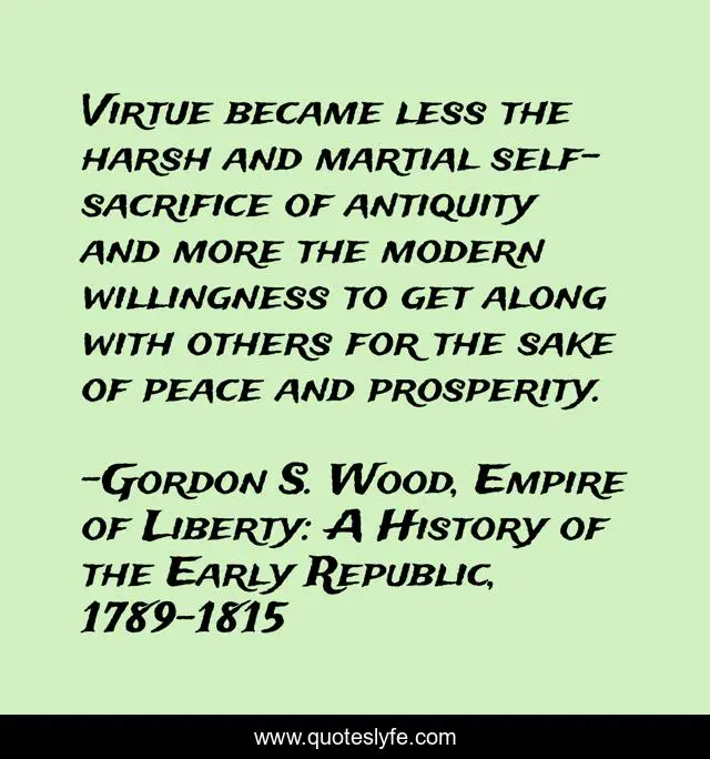 "Gordon S. Wood, Empire of Liberty: A History of the Early Republic, 1789-1815 Quotes." Quoteslyfe.com, 2025. Sat. 06 Dec. 2025. <https://www.quoteslyfe.com/quote/Virtue-became-less-the-harsh-and-martial-231307>.
