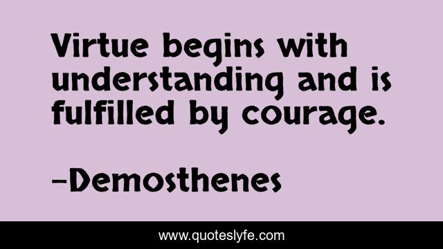 This page presents the quote "Virtue begins with understanding and is fulfilled by courage.". Author of this quote is Demosthenes. This quote is about courage, virtue,.