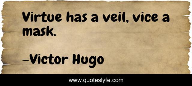 This page presents the quote "Virtue has a veil, vice a mask.". Author of this quote is Victor Hugo. This quote is about mask, virtue, vice,.