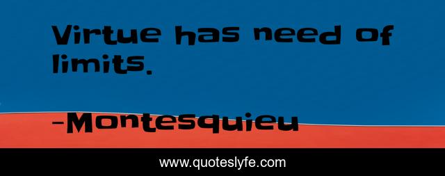 This page presents the quote "Virtue has need of limits.". Author of this quote is Montesquieu. .
