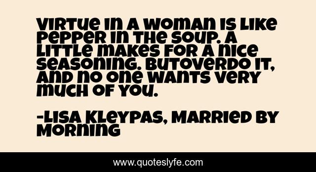 "Lisa Kleypas, Married By Morning Quotes." Quoteslyfe.com, 2025. Sat. 06 Dec. 2025. <https://www.quoteslyfe.com/quote/Virtue-in-a-woman-is-like-pepper-231304>.