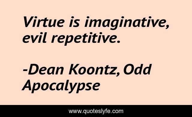 "Dean Koontz, Odd Apocalypse Quotes." Quoteslyfe.com, 2025. Sat. 06 Dec. 2025. <https://www.quoteslyfe.com/quote/Virtue-is-imaginative-evil-repetitive-126158>.