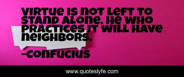 This page presents the quote "Virtue is not left to stand alone. He who practices it will have neighbors.". Author of this quote is Confucius. This quote is about neighbors, stand, virtue,.