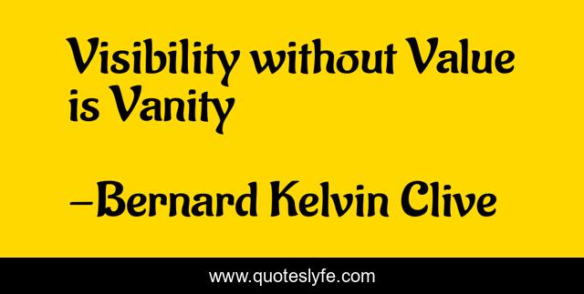 "Bernard Kelvin Clive Quotes." Quoteslyfe.com, 2025. Fri. 05 Dec. 2025. <https://www.quoteslyfe.com/quote/Visibility-without-Value-is-Vanity-176182>.