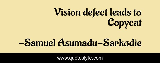 This page presents the quote "Vision defect leads to Copycat". Author of this quote is Samuel Asumadu-Sarkodie. This quote is about proverbs, words-of-knowledge, discernment, parables, words-of-wisdom, inspirational-life,.