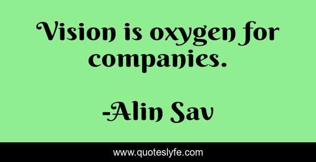 This page presents the quote "Vision is oxygen for companies.". Author of this quote is Alin Sav. This quote is about leadership, business, entrepreneurship,.