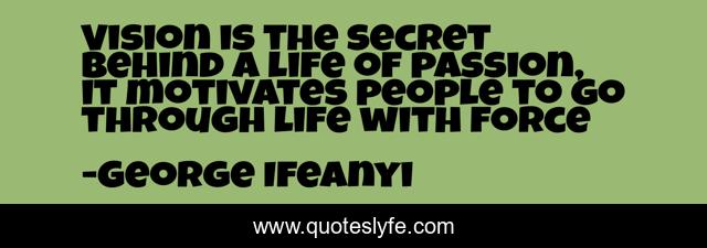 This page presents the quote "Vision is the secret behind a life of passion, it motivates people to go through life with force". Author of this quote is George Ifeanyi. .
