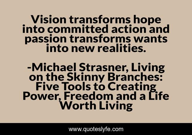 "Michael Strasner, Living on the Skinny Branches: Five Tools to Creating Power, Freedom and a Life Worth Living Quotes." Quoteslyfe.com, 2025. Fri. 05 Dec. 2025. <https://www.quoteslyfe.com/quote/Vision-transforms-hope-into-committed-action-and-78278>.
