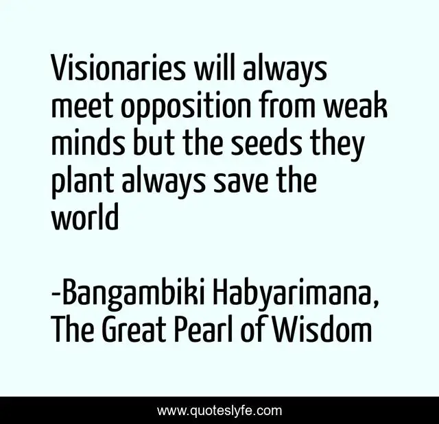 "Bangambiki Habyarimana, The Great Pearl of Wisdom Quotes." Quoteslyfe.com, 2025. Sat. 06 Dec. 2025. <https://www.quoteslyfe.com/quote/Visionaries-will-always-meet-opposition-from-weak-109303>.