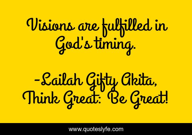"Lailah Gifty Akita, Think Great: Be Great! Quotes." Quoteslyfe.com, 2025. Fri. 05 Dec. 2025. <https://www.quoteslyfe.com/quote/Visions-are-fulfilled-in-God-s-timing-121387>.