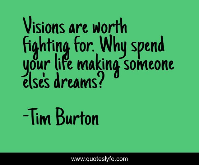 This page presents the quote "Visions are worth fighting for. Why spend your life making someone else's dreams?". Author of this quote is Tim Burton. This quote is about life, why, fighting,.