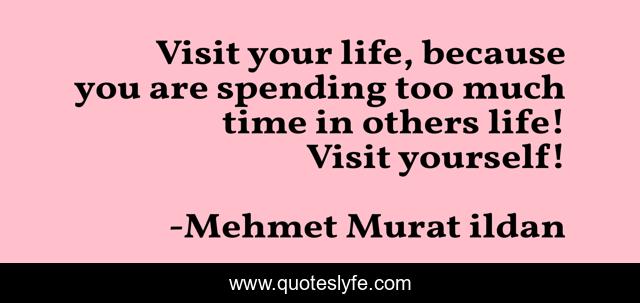 This page presents the quote "Visit your life, because you are spending too much time in others life! Visit yourself!". Author of this quote is Mehmet Murat ildan. This quote is about mehmet-murat-ildan, ildan-wise-sayings, visiting, ildan-wisdom, turkish-playwrights, turkish, visit, yourself, turkish-wisdom-words,.