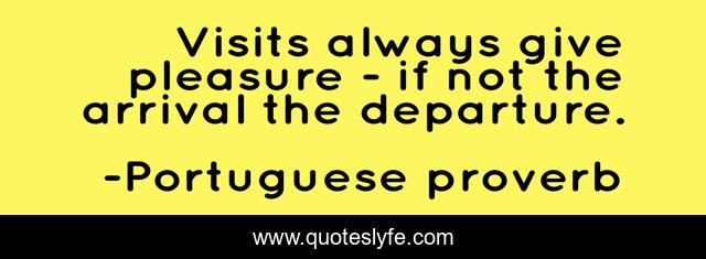 This page presents the quote "Visits always give pleasure - if not the arrival the departure.". Author of this quote is Portuguese proverb. This quote is about partings, meetings,.
