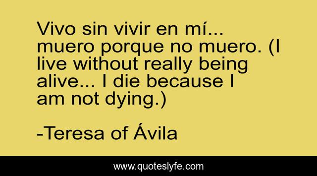 "Teresa of Ávila Quotes." Quoteslyfe.com, 2025. Sat. 06 Dec. 2025. <https://www.quoteslyfe.com/quote/Vivo-sin-vivir-en-m-muero-porque-7973>.