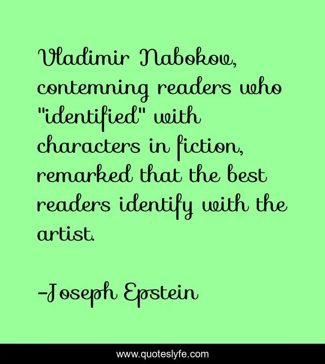 "Joseph Epstein Quotes." Quoteslyfe.com, 2025. Mon. 08 Dec. 2025. <https://www.quoteslyfe.com/quote/Vladimir-Nabokov-contemning-readers-who-identified-with-169359>.