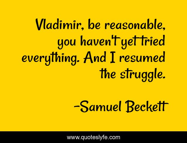 This page presents the quote "Vladimir, be reasonable, you haven't yet tried everything. And I resumed the struggle.". Author of this quote is Samuel Beckett. .