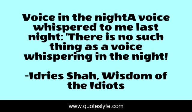 This page presents the quote "Voice in the nightA voice whispered to me last night: 'There is no such thing as a voice whispering in the night!". Author of this quote is Idries Shah, Wisdom of the Idiots. This quote is about sufism, sufis, illusion, truth, wisdom,.