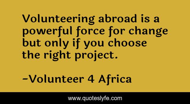 This page presents the quote "Volunteering abroad is a powerful force for change but only if you choose the right project.". Author of this quote is Volunteer 4 Africa. This quote is about africa, abroad, volunteering, volunteer,.
