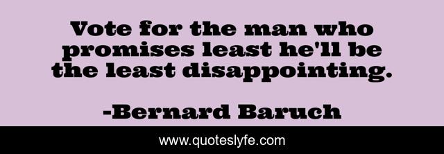 This page presents the quote "Vote for the man who promises least he'll be the least disappointing.". Author of this quote is Bernard Baruch. .