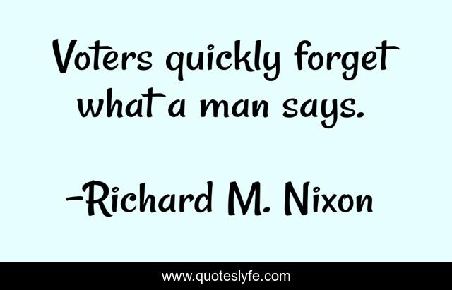 This page presents the quote "Voters quickly forget what a man says.". Author of this quote is Richard M. Nixon. This quote is about man, forget, quickly,.
