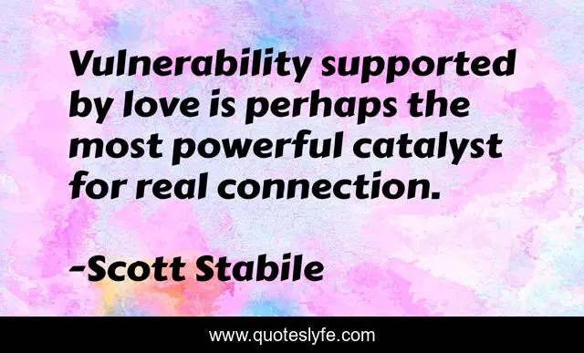 This page presents the quote "Vulnerability supported by love is perhaps the most powerful catalyst for real connection.". Author of this quote is Scott Stabile. This quote is about relationships, love, vulnerability, powerful, connection, affection,.