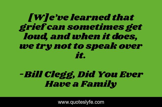 This page presents the quote "[W]e’ve learned that grief can sometimes get loud, and when it does, we try not to speak over it.". Author of this quote is Bill Clegg, Did You Ever Have a Family. This quote is about grief, mourning,.