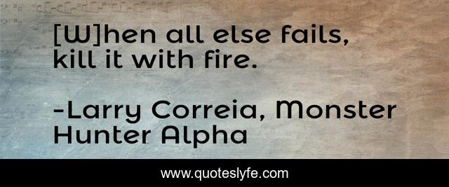 This page presents the quote "[W]hen all else fails, kill it with fire.". Author of this quote is Larry Correia, Monster Hunter Alpha. This quote is about fire, last-resort, kill,.