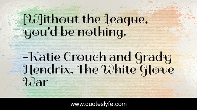 "Katie Crouch and Grady Hendrix, The White Glove War Quotes." Quoteslyfe.com, 2025. Mon. 08 Dec. 2025. <https://www.quoteslyfe.com/quote/W-ithout-the-League-you-d-be-133675>.