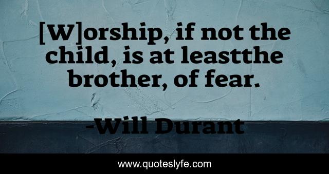 This page presents the quote "[W]orship, if not the child, is at leastthe brother, of fear.". Author of this quote is Will Durant. This quote is about philosophy-of-history, history,.