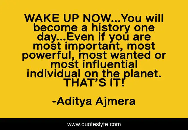 WAKE UP NOW...You will become a history one day...Even if you are most important, most powerful, most wanted or most influential individual on the planet. THAT’S IT!