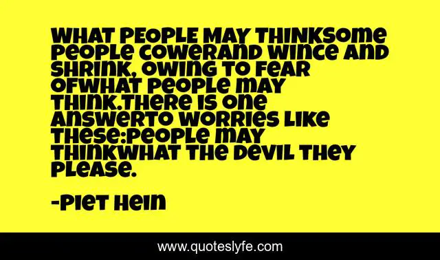 "Piet Hein Quotes." Quoteslyfe.com, 2025. Sat. 06 Dec. 2025. <https://www.quoteslyfe.com/quote/WHAT-PEOPLE-MAY-THINKSome-people-cowerand-wince-232801>.
