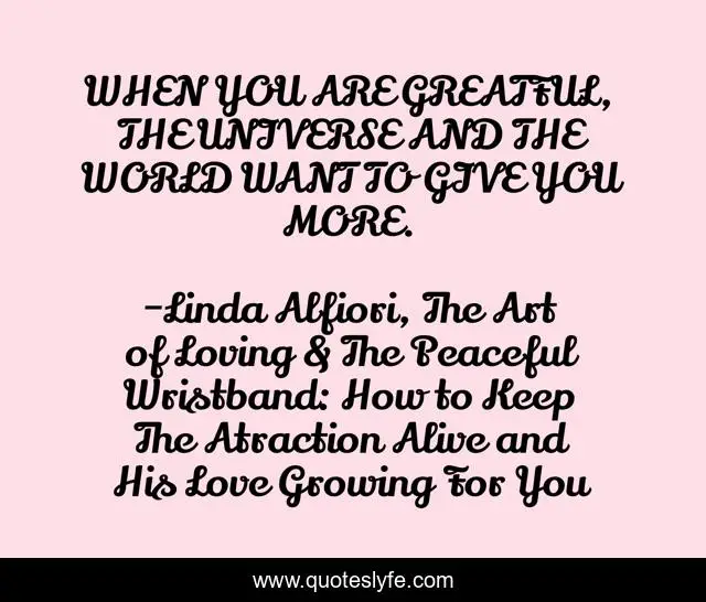 "Linda Alfiori, The Art of Loving & The Peaceful Wristband: How to Keep The Atraction Alive and His Love Growing For You Quotes." Quoteslyfe.com, 2025. Fri. 05 Dec. 2025. <https://www.quoteslyfe.com/quote/WHEN-YOU-ARE-GREATFUL-THE-UNIVERSE-AND-48715>.