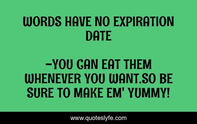 "YOU CAN EAT THEM WHENEVER YOU WANT.SO BE SURE TO MAKE EM' YUMMY! Quotes." Quoteslyfe.com, 2025. Sun. 07 Dec. 2025. <https://www.quoteslyfe.com/quote/WORDS-HAVE-NO-EXPIRATION-DATE-88335>.