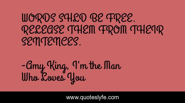 "Amy King, I'm the Man Who Loves You Quotes." Quoteslyfe.com, 2025. Sun. 07 Dec. 2025. <https://www.quoteslyfe.com/quote/WORDS-SHLD-BE-FREE-RELEASE-THEM-FROM-182283>.