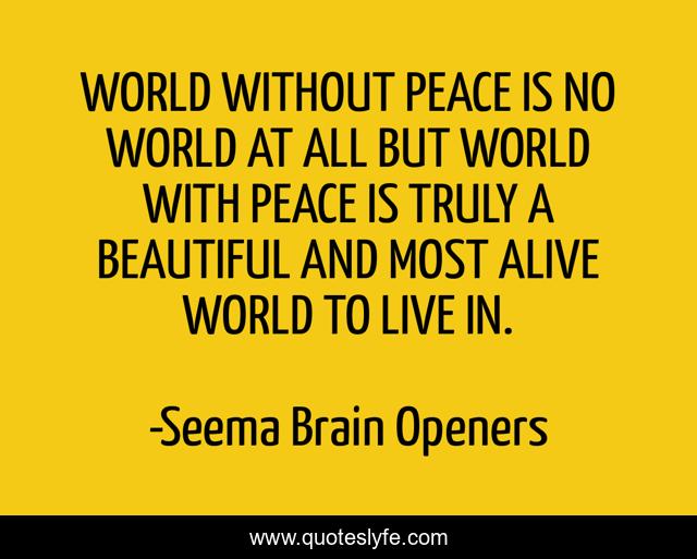 This page presents the quote "WORLD WITHOUT PEACE IS NO WORLD AT ALL BUT WORLD WITH PEACE IS TRULY A BEAUTIFUL AND MOST ALIVE WORLD TO LIVE IN.". Author of this quote is Seema Brain Openers. This quote is about peace, love, affection,.