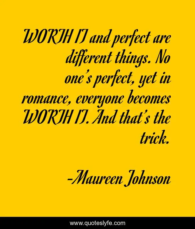 "Maureen Johnson Quotes." Quoteslyfe.com, 2025. Fri. 05 Dec. 2025. <https://www.quoteslyfe.com/quote/WORTH-IT-and-perfect-are-different-things-18033>.
