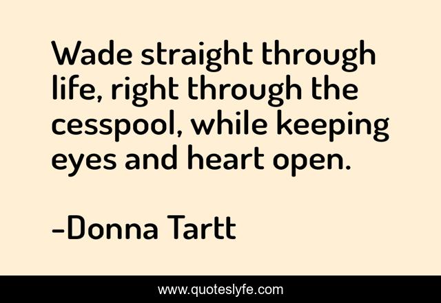 This page presents the quote "Wade straight through life, right through the cesspool, while keeping eyes and heart open.". Author of this quote is Donna Tartt. This quote is about enthusiasm, life, deep, inspirational,.
