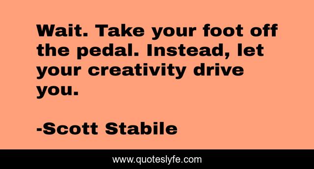 This page presents the quote "Wait. Take your foot off the pedal. Instead, let your creativity drive you.". Author of this quote is Scott Stabile. This quote is about creativity, inspiration,.