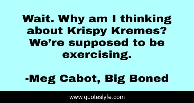 This page presents the quote "Wait. Why am I thinking about Krispy Kremes? We’re supposed to be exercising.". Author of this quote is Meg Cabot, Big Boned. This quote is about food, humor,.