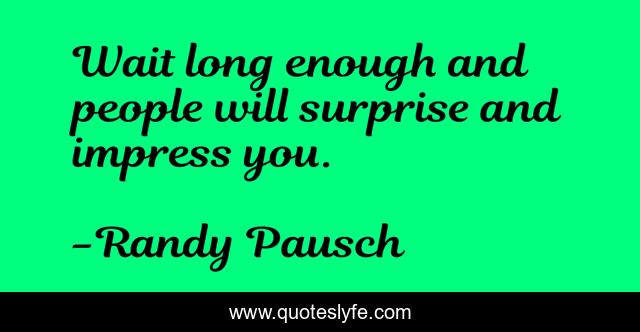 This page presents the quote "Wait long enough and people will surprise and impress you.". Author of this quote is Randy Pausch. This quote is about humanity-advice, patience, inspirational, enthusiasm,.