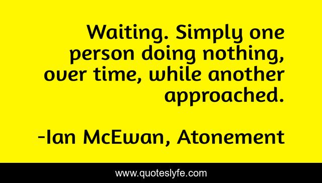 "Ian McEwan, Atonement Quotes." Quoteslyfe.com, 2025. Sun. 07 Dec. 2025. <https://www.quoteslyfe.com/quote/Waiting-Simply-one-person-doing-nothing-over-38553>.
