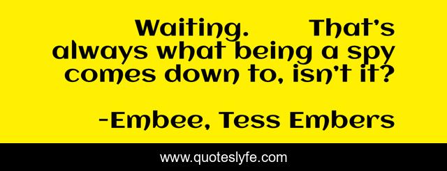 This page presents the quote "Waiting. That’s always what being a spy comes down to, isn’t it?". Author of this quote is Embee, Tess Embers. This quote is about waiting, spies,.