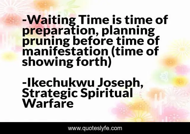 "Ikechukwu Joseph, Strategic Spiritual Warfare Quotes." Quoteslyfe.com, 2025. Fri. 05 Dec. 2025. <https://www.quoteslyfe.com/quote/Waiting-Time-is-time-of-preparation-planning-62258>.