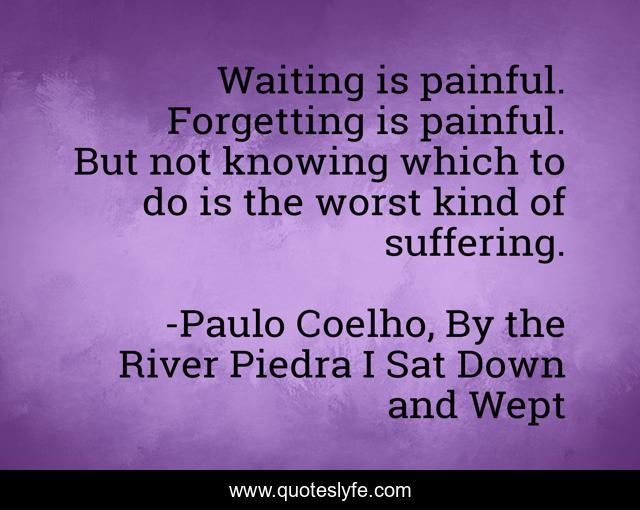 "Paulo Coelho, By the River Piedra I Sat Down and Wept Quotes." Quoteslyfe.com, 2025. Fri. 05 Dec. 2025. <https://www.quoteslyfe.com/quote/Waiting-is-painful-Forgetting-is-painful-But-3737>.