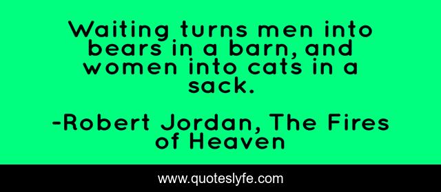 This page presents the quote "Waiting turns men into bears in a barn, and women into cats in a sack.". Author of this quote is Robert Jordan, The Fires of Heaven. This quote is about waiting, men, women,.